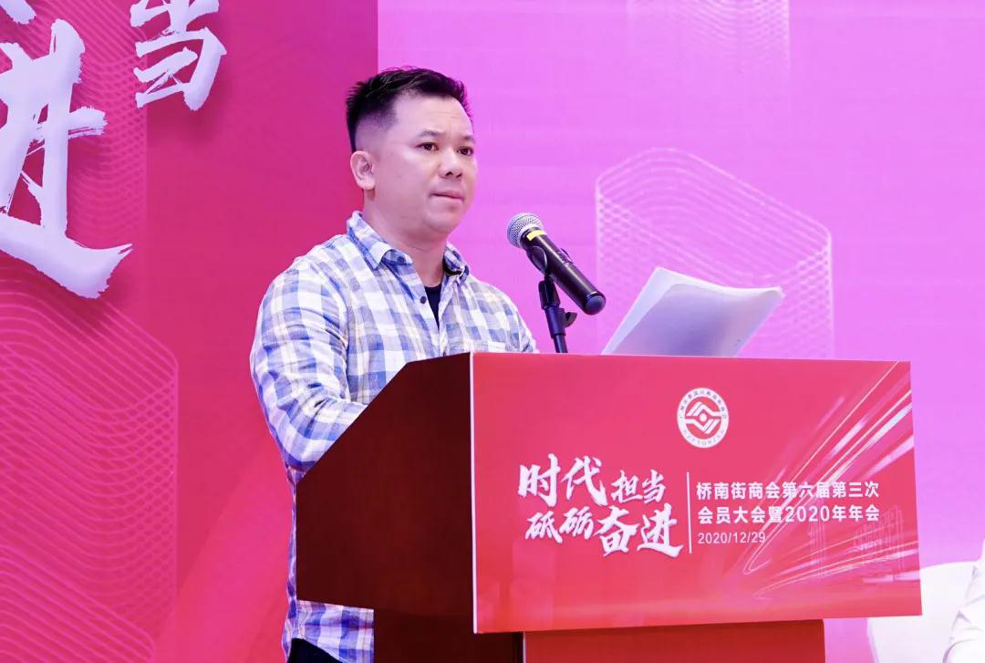为全面总结商会2020年工作,共商新一年工作大计。12月29日下午,桥南街商会第六届第三次会员大会在增城森林海酒店顺利召开。番禺区民政局四级调研员张均才、桥南街道办事处副主任许智殷、区民政局社管科科长李红珊、商会会员参加了会议。 在会员大会上,会议通过了《桥南街商会2020年工作总结及2021年工作计划》、《桥南街商会2020年财务收支情况报告》以及《桥南街商会2020年监事会工作报告》,并审议了12家新会员的名单。