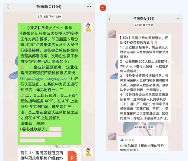 接种新冠疫苗是疫情防控期间预防传染、保障全民健康最方便有效的办法。桥南街商会在会员企业中宣传疫情防控和疫苗接种的政策,并对疫苗的防护作用和接种需要注意的事项都作了详细的说明,号召他们积极参与疫情防控、进行疫苗接种。