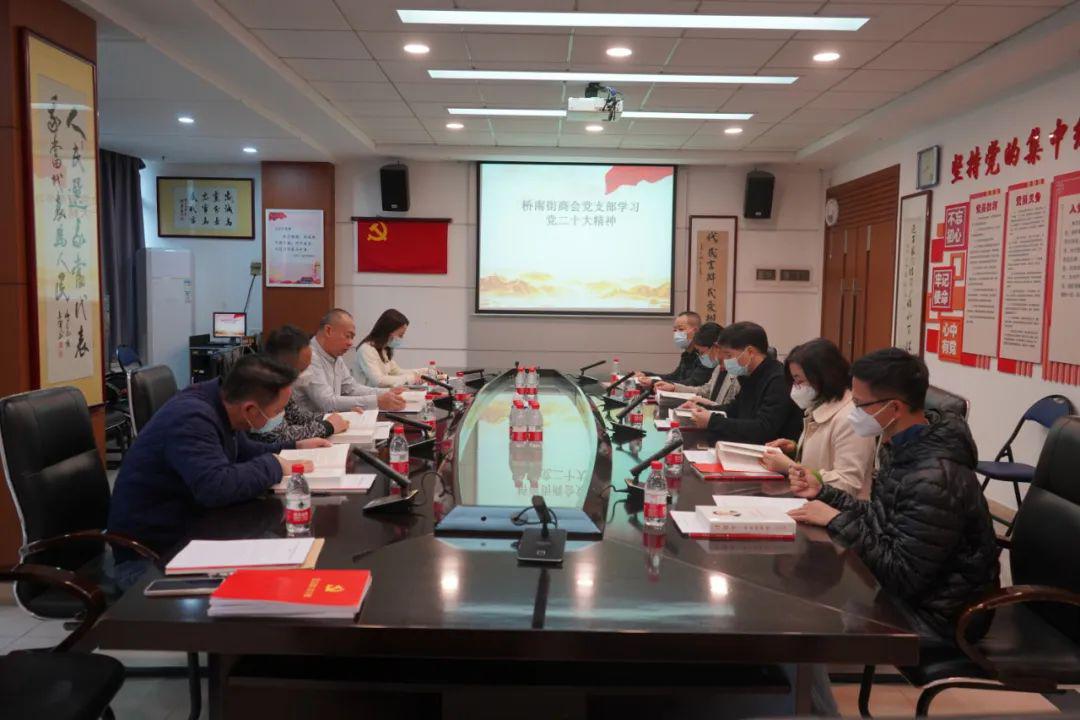2023年1月10日上午,桥南街商会党支部在街道办事三楼会议室举行学习贯彻党的二十大精神暨党支部换届选举大会。会前,由党支部书记梁永雄讲党课,围绕党的二十大报告的主体内容,以及报告所蕴含的一系列重要历史论断,带领全体党员学习党的二十大报告精神。