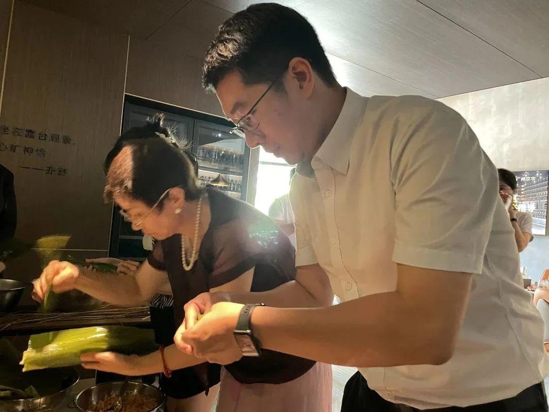 会员们热情高涨,纷纷上前去迫不及待地忙碌起来。折粽叶、填糯米、裹叶子、系线,粽叶飞舞,专注投入。眨眼功夫,各式各样、千姿百态的粽子纷纷成型,大家都包得十分尽兴,现场欢声笑语不断,其乐融融。