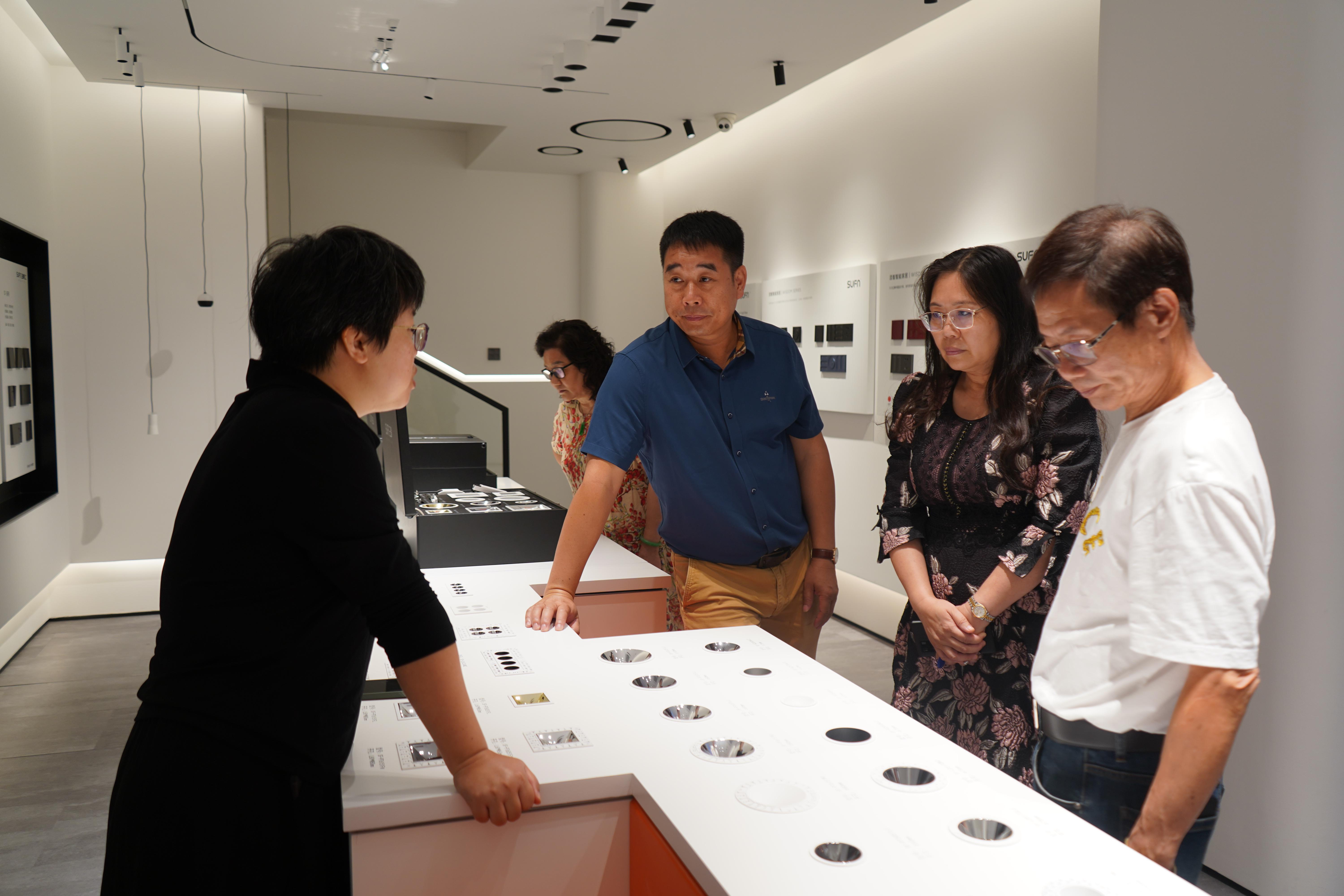 首先,洋江行照明公司李欣总经理向大家介绍了公司发展历程、企业文化、产品技术等情况。随后,工作人员介绍了现代智能灯光概念及应用、灯饰的产品特点等。并带领大家参观了“三峰SUFN智能灯光体验馆”,从色温、用途、健康、氛围多个维度对体验馆每个功能区深入讲解。体验馆产品品类多样,创新功能层出不穷,简而不凡、奢而不华的格调,吸引了大家的关注与好评。大家一致认为,要多交流,谈机遇,共谋发展。
