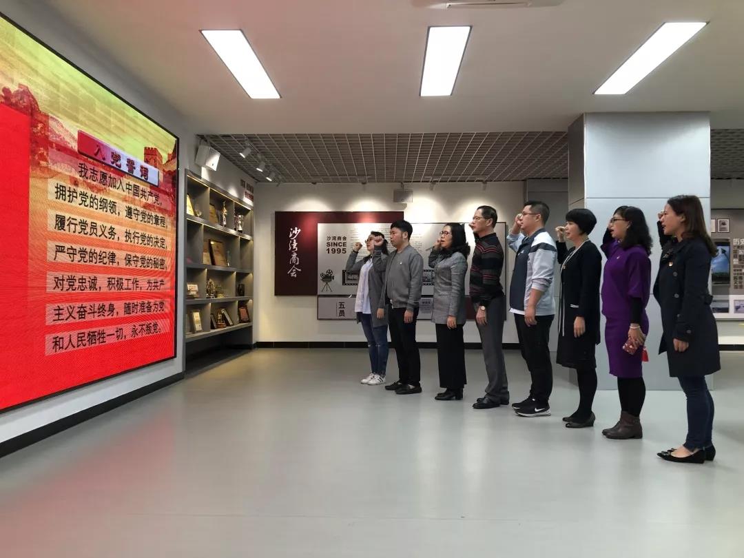 一行人在沙湾商会李梅秘书长的带领下,参观沙湾商会展厅和党建展厅。通过参观商会展厅了解商会发展历程及企业情况。在参观党建展厅,大家上了一节生动的党课,通过重温入党誓词,进一步增强了党员光荣感、使命感和责任感。
