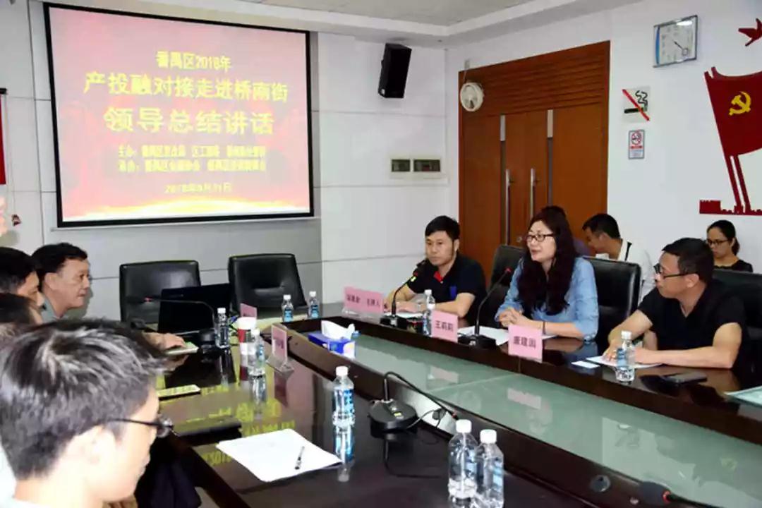 8月31日下午,“番禺区2018年产投融对接活动走进桥南街”专场,在街道办事处3楼会议室举办。桥南街党工委王莉莉委员、区发改局金融科唐建国副科长、金融协会谢沛森秘书长、陈华锋副秘书长、我会梁建君秘书长及我会有融资需求的20家企业代表、金融协会9家银行、4家券商、2家投资基金、2家小贷公司、3家类金融服务机构等共40