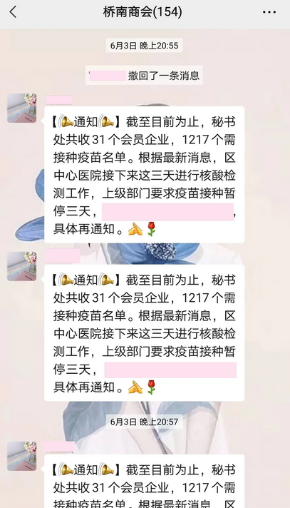 接种新冠疫苗是疫情防控期间预防传染、保障全民健康最方便有效的办法。桥南街商会在会员企业中宣传疫情防控和疫苗接种的政策,并对疫苗的防护作用和接种需要注意的事项都作了详细的说明,号召他们积极参与疫情防控、进行疫苗接种。