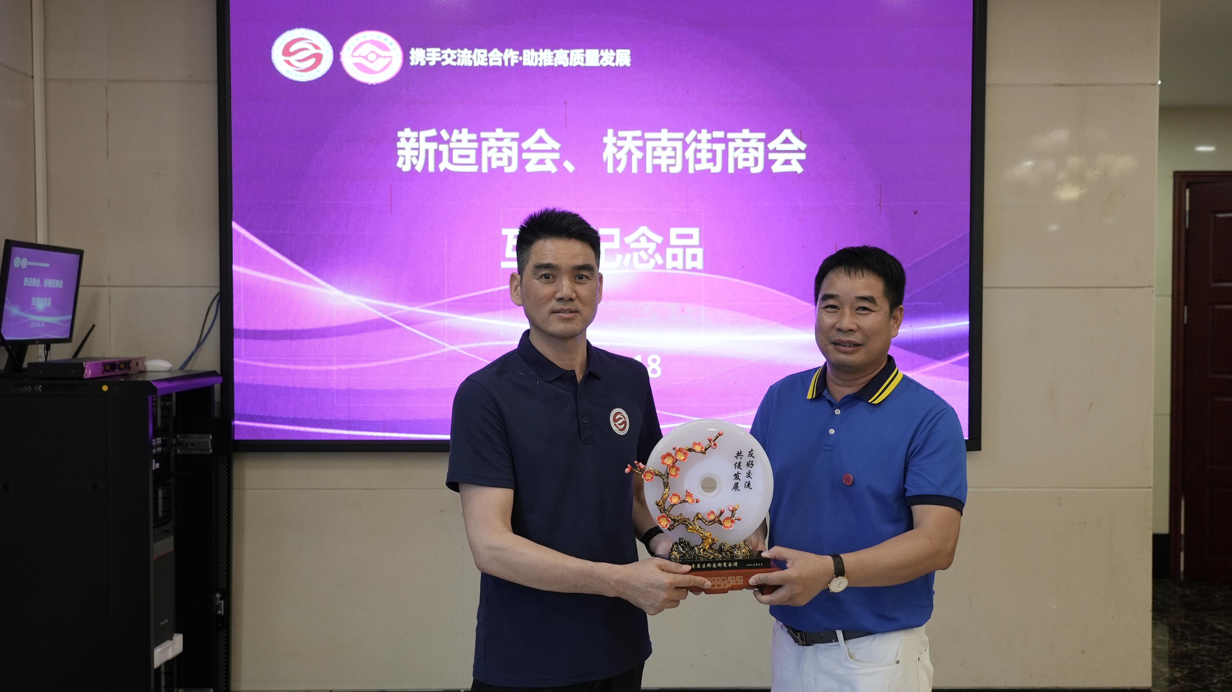 晚宴上,桥南街商会会长张志勤、新造商会会长陈黎明分别发言,双方介绍了两个商会的发展历程,分享了办会经验。他们希望通过友好交流将进一步加强两个商会的合作和交流,抱团取暖,共同探索新时期商会工作新思路,达到资源共享,更好地为两个商会会员服务,实现两地优势互补,助力番禺经济高质量发展。双方互赠纪念品。