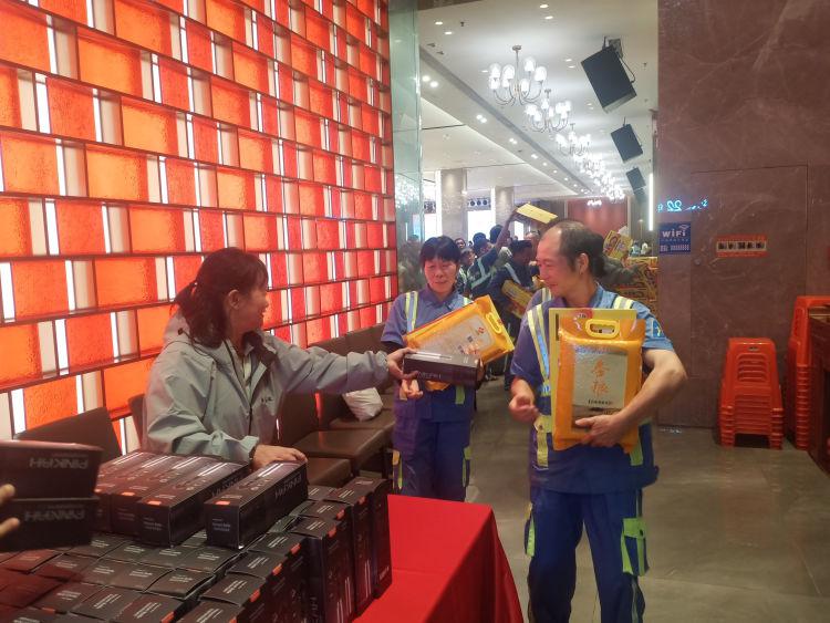 会后,桥南街商会为全体环卫工人送上节日慰问一份。