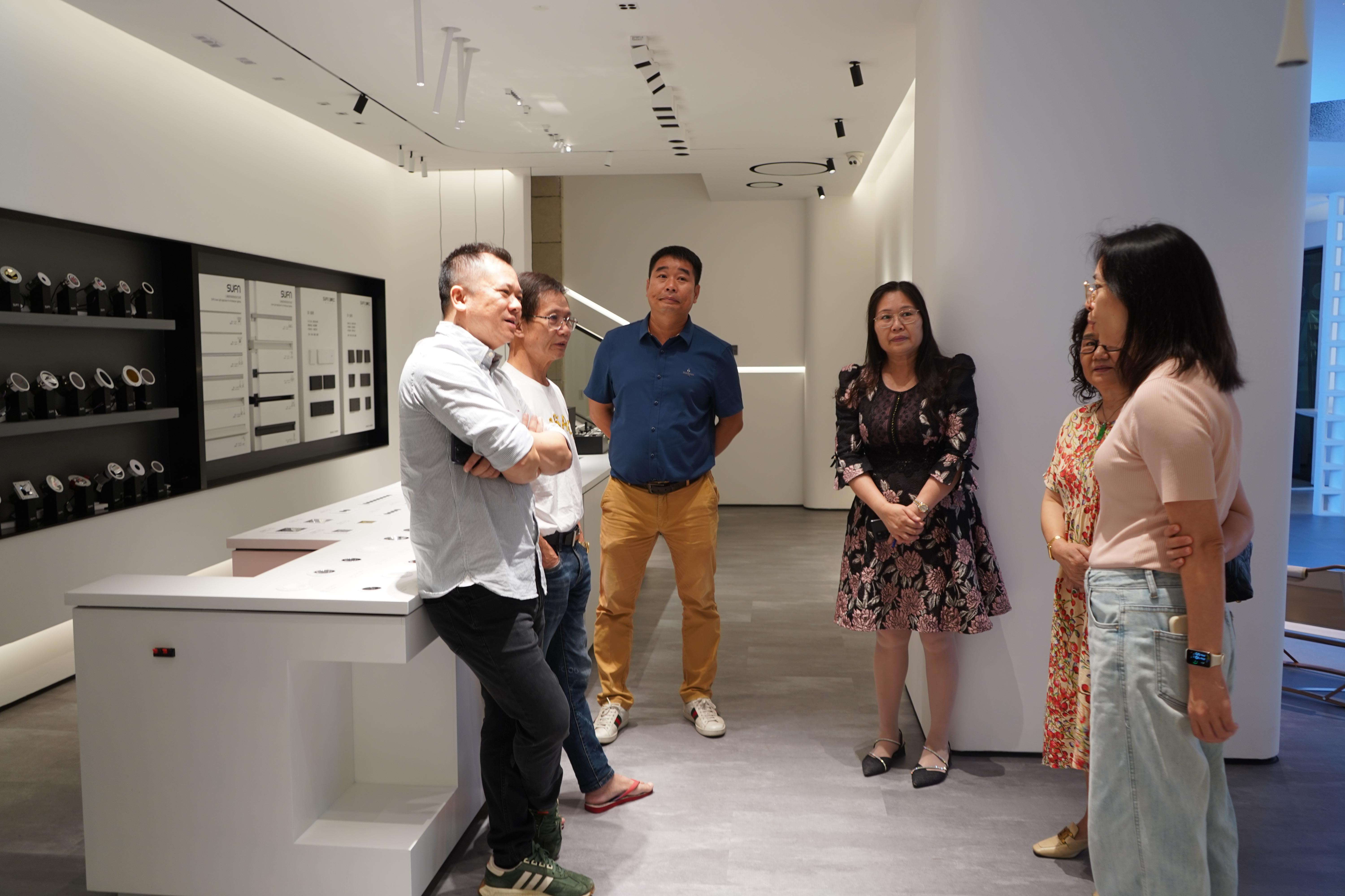 为深入了解会员企业经营情况和发展需求,发挥商会的纽带作用,促进会员企业之间相互学习、相互合作。11月10日,商会会长张志勤、副会长吴卫华、何伟明、冼曼莉、戴庆培、监事长聂翠嫦以及秘书处一行到会员企业广州市洋江行照明电器有限公司参观交流。